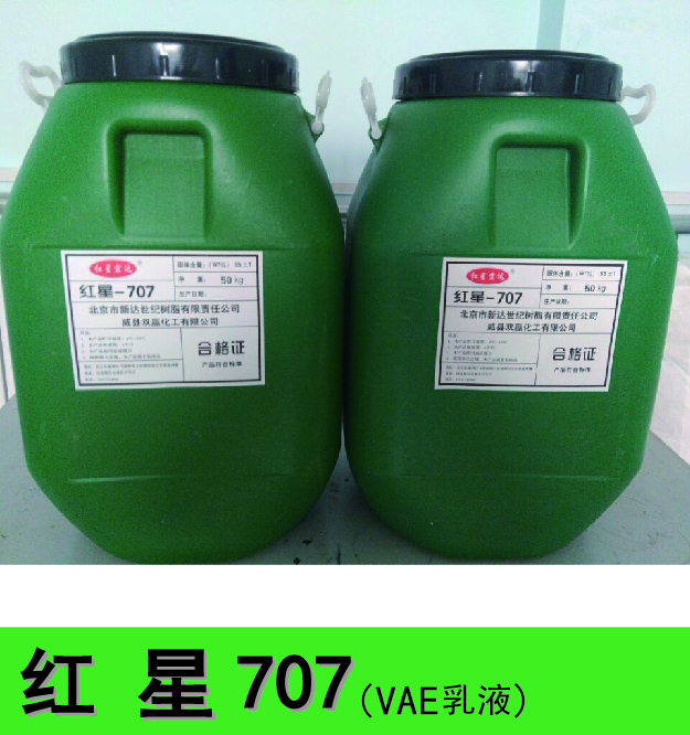 紅星—707(VAE)乳液是一種乳白色乳液(醋酸乙烯酯--乙烯共聚乳液),是一種高品質的通用粘合劑。它有著優良的初粘性和機械穩定性,對許多不同的基材...