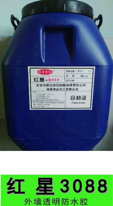紅星一3088外墻透明防水膠是以特種共聚乳液為基料,加以多種優質進口助劑和特種單體物質精制而成的高分子無色透明的外墻防水乳液。膠體固化后能形成一...